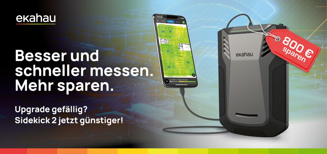 In Verbindung mit dem Ekahau Sidekick*, der über einen 8-Stunden-Akku verfügt, können Sie länger vermessen, ohne aufladen zu müssen.